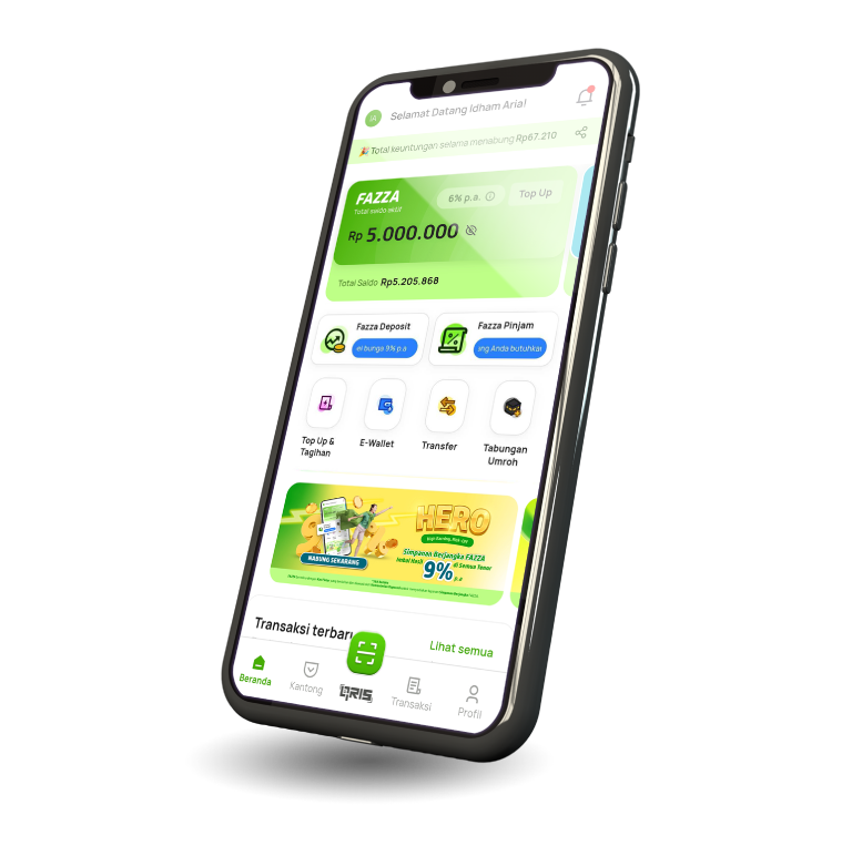 Fitur pendukung seperti kantong Fazza untuk bantu kamu kelola keuangan