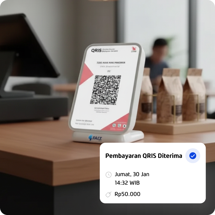 QRISuara berbunyi otomatis sebagai konfirmasi pembayaran berhasil diterima.